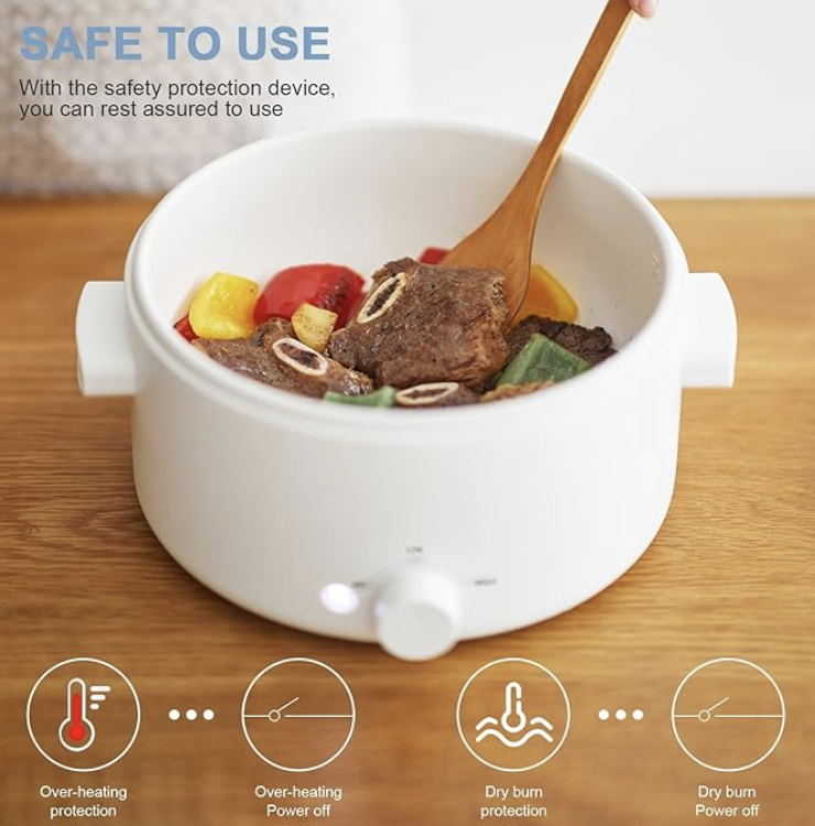 - Core Advantages: All-in-one functionality for frying, stir-frying, boiling, and hot pot; no stovetop required for cooking steak, fried rice, noodles, etc. The power cord can be stored inside the pot for maximum portability. Equipped with boil-dry and overheat protection, the side of the pot stays mildly warm to the touch for safe use. Includes a free silicone spatula for immediate use outside of the box.