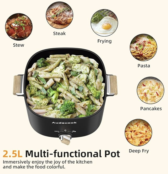 Audecook 2.5L Portable Non-Stick Electric Hot Pot