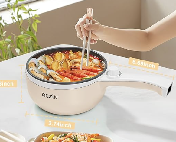 The Dezin 1.5L Upgraded Non-Stick Sauté Pan is the ultimate all-scene pick. Lightweight with a 110V US plug for travelers, it serves 1–3 people for studio meals or small gatherings, and its ≤600W power and auto-shutoff make it dorm-compliant and safe.