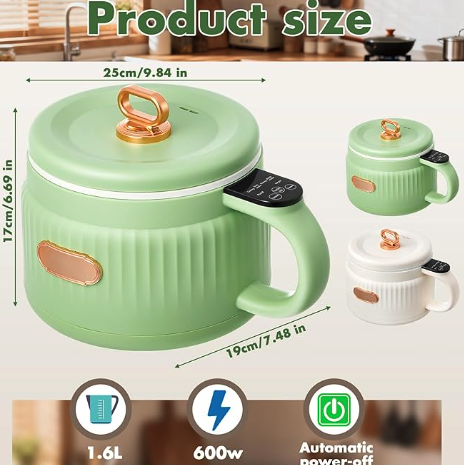 - Simple Operation: A single knob controls temperature—no complicated settings, great for tired travelers.Minor Drawbacks: Short non-detachable power cord (limits placement near outlets) and steam leaks from the lid, risking burns when opening.Real User Quote: “Heats ramen fast, but the cord is so short I have to unplug it to pour water into my bowl. Steam burns my hands every time I open the lid.”